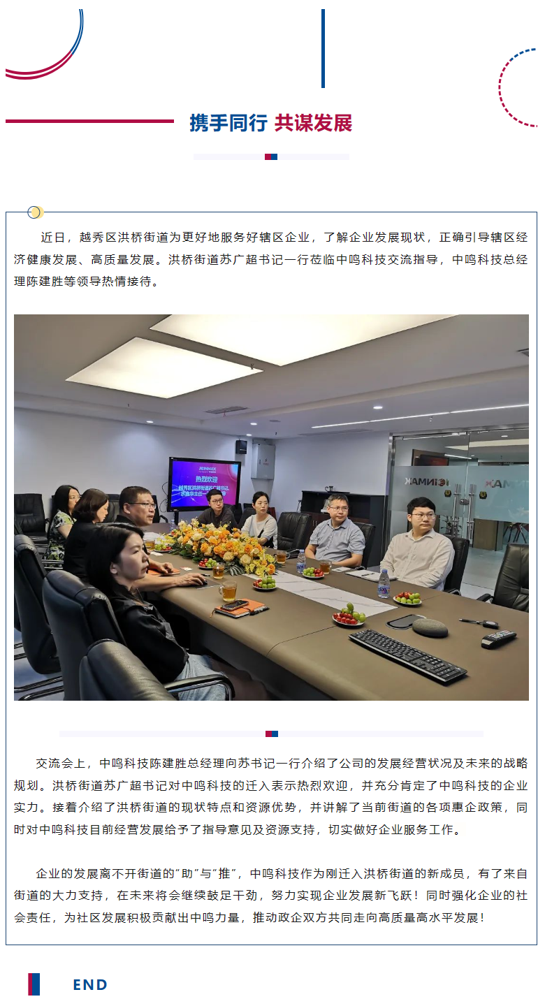 攜手同行,共謀發展——越秀區洪橋街道蘇廣超書記一行蒞臨中鳴科技指導交流