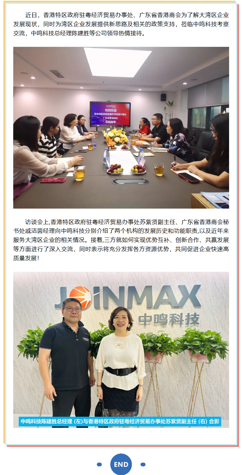 扎根灣區,共商互贏--香港特區政府駐粵經濟貿易辦事處、廣東省香港商會蒞臨中鳴科技考察交流