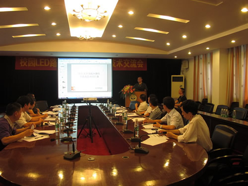 技術交流會上,我司陳建勝總經理首先做了發言,對項目的實施情況、產品的研發設計情況及產品特性做了詳細的陳述。各領導和專家也各抒己見,表達了自己的意見和看法,同時,對我司認真負責的工作態度及產品的質量給予了充分地肯定。之后,各領導和專家在現場考察了新改造的LED庭院式路燈,對北校區路燈改造項目工作給予了高度的評價。