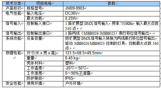 JM09-9903 DS轉換器,是一款可以把DMX信號轉換為串行移位信號的控制器,DS轉換器具有如下特性: