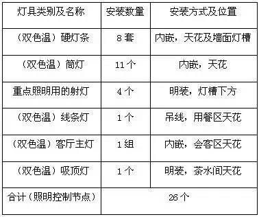 使用的燈具光源如下表所示,該體驗(yàn)區(qū)燈具的控制點(diǎn)數(shù)多達(dá)26個(gè),為了使光環(huán)境的調(diào)控更為豐富,大多數(shù)燈具的光源都采用了雙色溫調(diào)光調(diào)色LED照明光源。