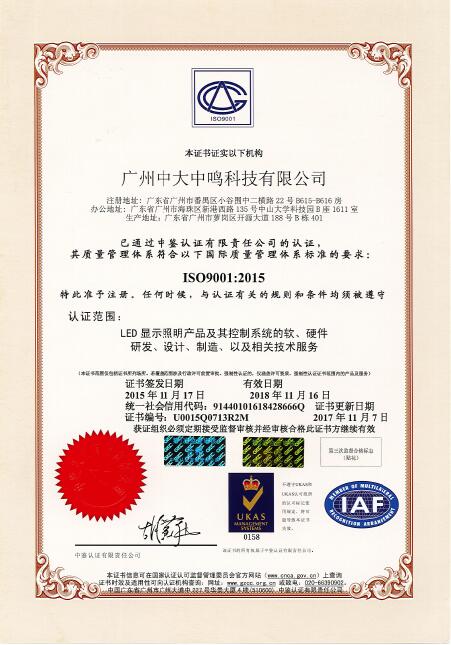 017年11月7日,我公司收到中鑒認證公司簽發(fā)的ISO9001:2015質(zhì)量管理體系認證證書,這標志著我公司質(zhì)量管理體系獲得認證機構(gòu)認可,并順利完成了標準換版工作,同時也體現(xiàn)中鳴公司堅持質(zhì)量為本、精益求精、服務(wù)至上的企業(yè)精神。