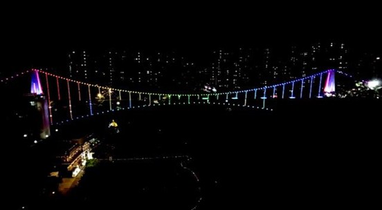項目采用基于4G無線互聯網技術可遠程監控的JOINMAX異步燈光控制系統,通過移動終端應用軟件APP,可對系統的供電和信號進行遠程監測和控制。同時出于玻璃橋觀光用途安全性考慮,電力系統采用兩級電壓變換,有效解決了橋身對設備重量限制及高壓安全隱患問題。