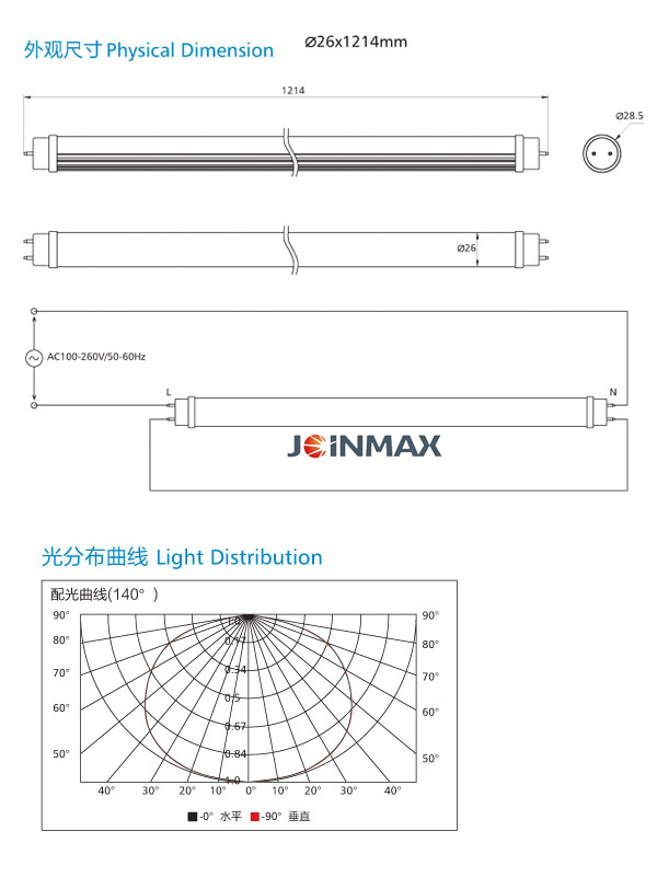 1500mm | 23W | 冷白 Cold?White?5000K | CRI=70 | 1900lm | JM12-236001RZ |