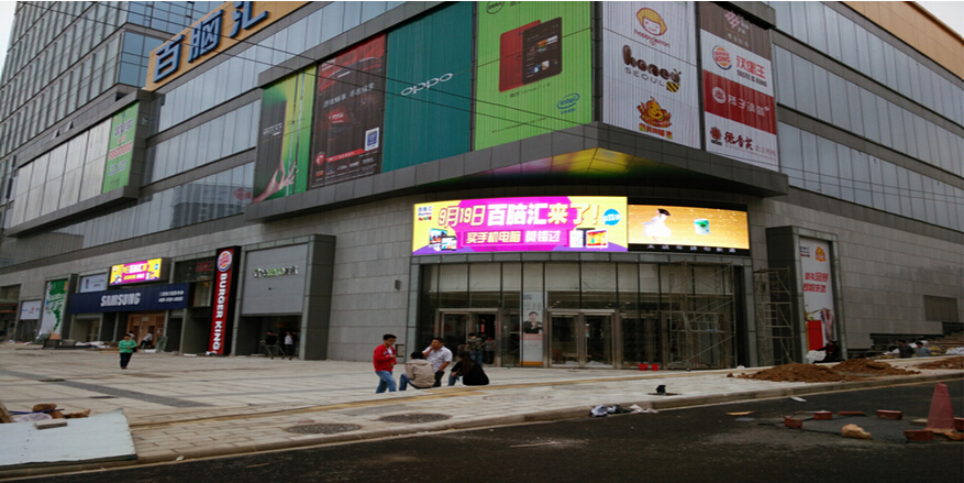 Description: Buynow Info Plaza is located at no 6, luoyu road, hongshanarea in Wuhan. It’s the 2nd period project of Qunguang Square. Thetotal area is 84,675sqm. Construction area on the ground is 64,000sqm. Joinmaxundertook 2pcs of P10 screens in the Podium. Total area is 60sqm. They’re usedfor advertising and information publication.